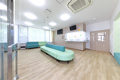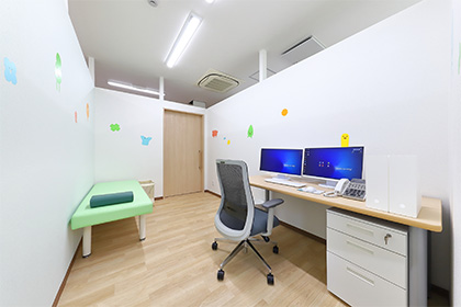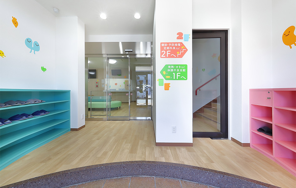 予防接種・乳幼児健診のために来院した方と、病気診療で来院した方が院内で接触することを避けるため、1階と2階で、待合室・診察室・処置室を分離型にしています。